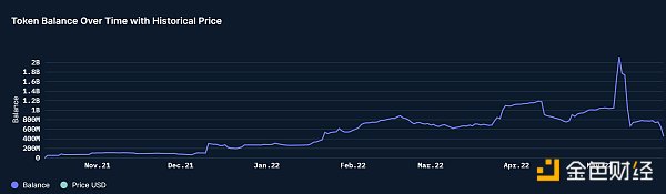图 1:按区块时间戳划分的 UST 净代币余额,2022 年年初至今: