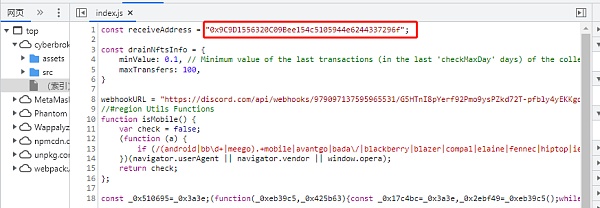 查看网页源码,根据solana web3的官方文档API,确认如下地址为攻击地址: