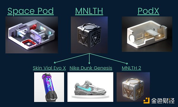 MNLTH 是其中最神秘的一个。 NFT持有者有各种虚拟任务要做,社区必须团结起来才能找到谜语的答案。这又是 RTFKT在规划自己的道路,为他们的社区创造互动体验,而不是简单地在预定时间透露他们的计划。MNLTH持有者可以选择燃烧他们的MNLTH NFT 以获得3个独立的NFT —— Skin Vial Evo X、Dunk Crypto Kicks & MNLTH 2。