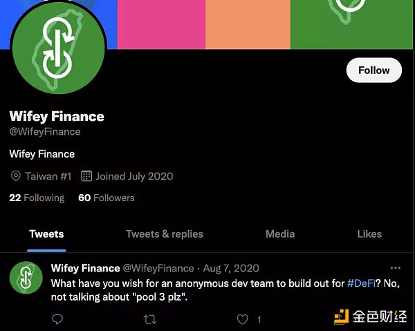8 月,一个「匿名团队」创建了 Yearn Finance 的分叉项目 Wifey Finance,?麻吉大哥、Leo Cheng 和 Wilson Huang 都恰好是 Wifey Discord 频道的第一批成员。TTransaction 记录显示,Wifey 的部署者多次向 Wilson Huang 汇款。四天后,Wifey Finance 被抛弃。
