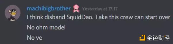 又一次,一个「匿名团队」支持由于游戏 Squid DAO 的推出,这是一个 OHM/Nouns DAO 分支,于 2021 年 10 月出现。早期持有者中有 MachiBigBrother.eth。到 2022 年 1 月,该项目在 Machi 的建议下关闭了。