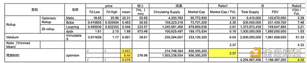 3.5.1 Value/TVL 下图选取的更多的是 L2 而非主流 L1(毕竟 TVL 一层和二层差距还是比较大);取了 trimmed mean 来算 ratio1 和 2,进而类比反推