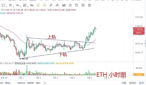 目前从以太坊小时图看,确实是突破三角整理上轨压力。