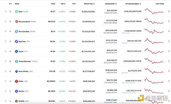 NFT总市值、市值排名前十项目 数据来源:coinmarketcap