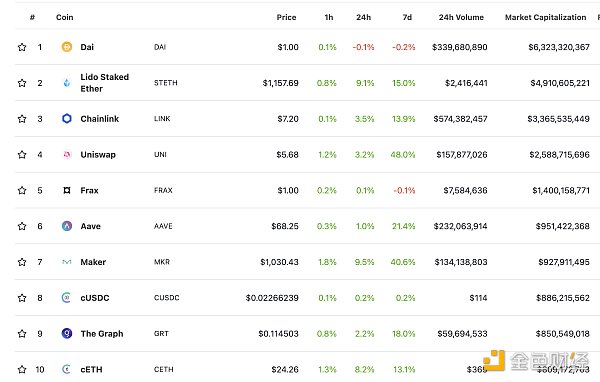 DeFi项目锁定资产前十排名及锁仓量 数据来源:defillama