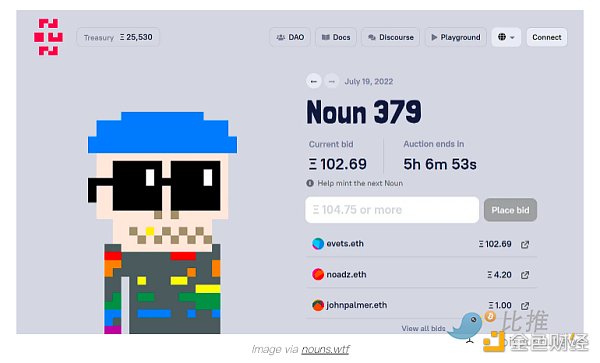 Nouns DAO——“一个Noun,,每天,永远”是主要Nouns项目的口号;底层协议从一组特征中生成头像,拍卖头像,并每天拍卖一次。