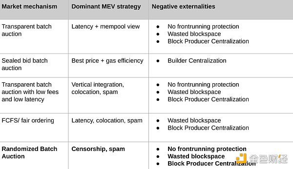 Flashbots 提出了以下五种市场方案来限制 MEV 的提取, 从而减小 MEV 的总体负外部性: