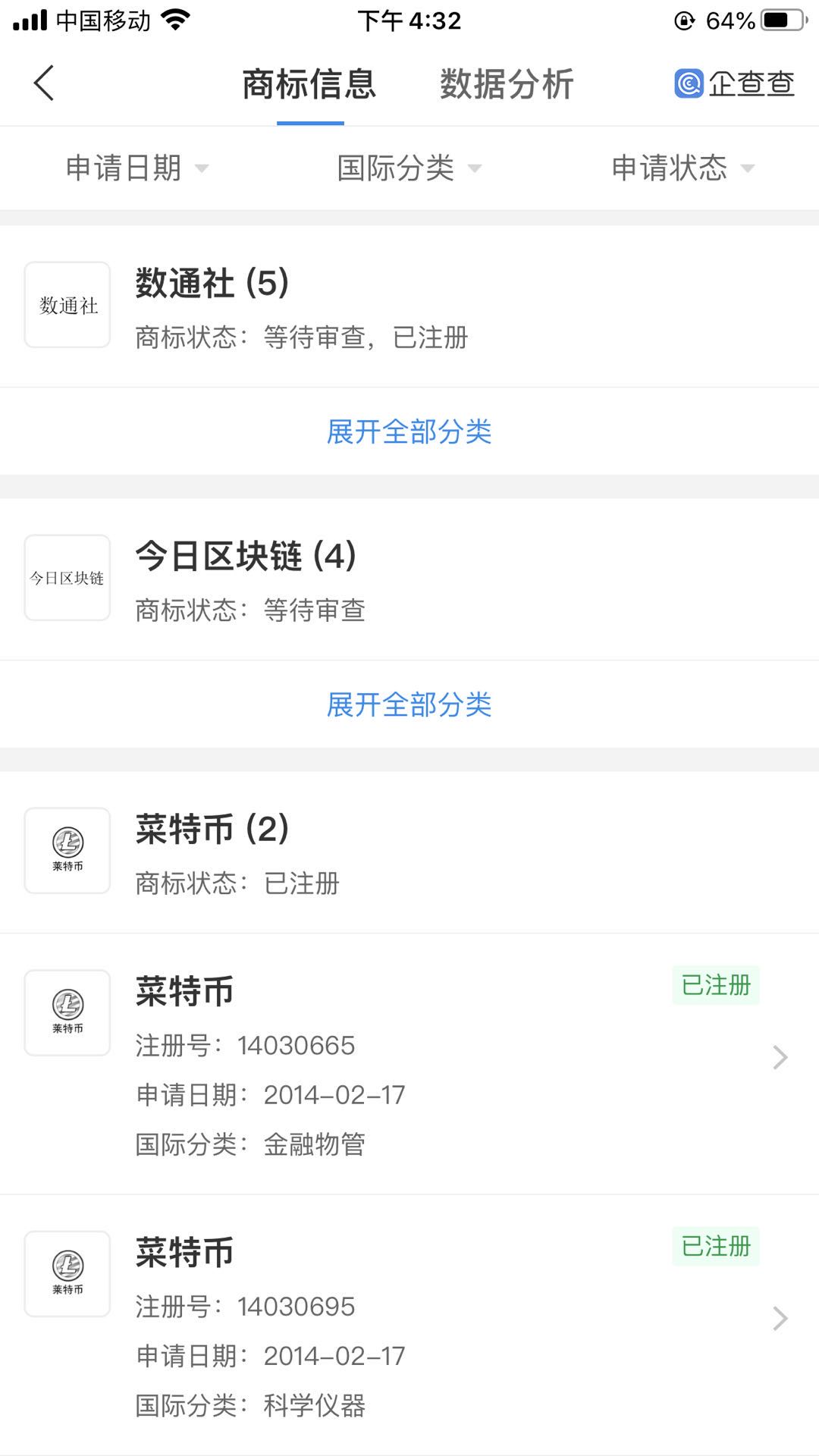 此外,经查证,深圳远为文化有限公司,除了莱特币商标外,还拥有92个商标注册权,企查查显示,其中包含了“链”“币”相关字眼的有以太猫、PLAYCOIN、中缅链、今日区块链、比特财经等。