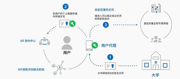一个应用场景:爱丽丝(Alice)最近刚大学毕业。她有一份学校颁布的针对DID的毕业证书电子副本。她可以选择向任何人(如潜在的雇主)出示文凭,他们可以独立地核实文凭发行时间及其状态。