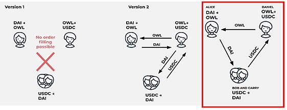 交易类型对比,红色方框是Gnosis Protocol采用的环型交易