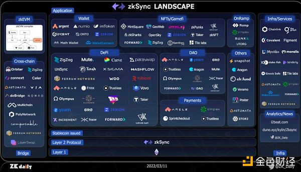 图为 ZK Daily 绘制的 zkSync 生态图景