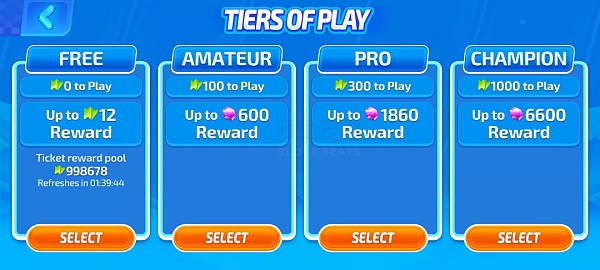 通过使用 Ticket,玩家可参加高等级比赛获得 Gem 奖励;