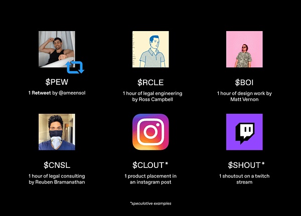 $CLOUT、$SHOUT 等其他用于获取来自有影响力者的工作的可赎回代币。