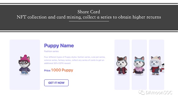 链接:https://bsc.copuppy.io/farms/mining(持有NFT卡片自动获得收益,无需任何操作)