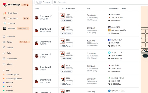 其实他是针对Sushiswap推出的Onsen(温泉)计划而得出这样的观点。下面来具体看看Sushiswap的Onsen新玩法。