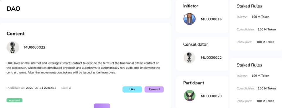 由于这些 DApps 是架构在 DAC 的组织框架之上,社群成员可以发挥他们的力量,在一套统一的管理规则下参与到项目的价值生成活动之中,贡献并获得通证激励。