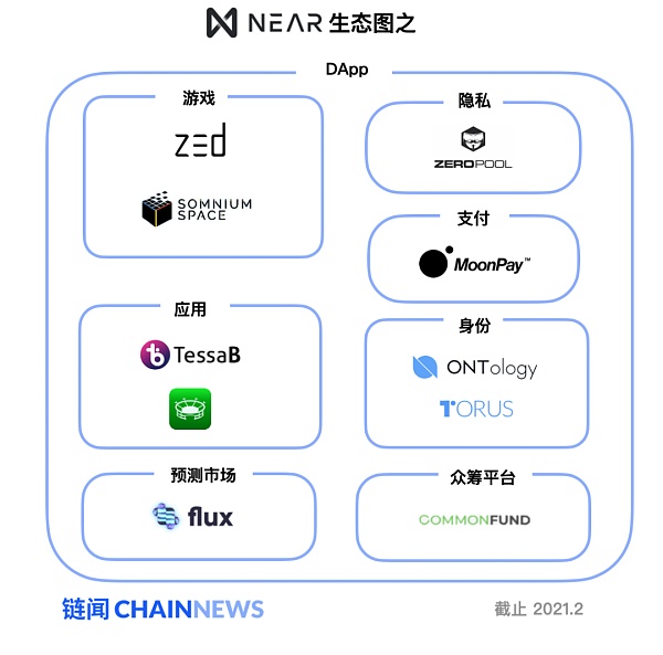 截止 2021 年 2 月底,NEAR 生态中已包含了基础设施、DApp、开发工具、DeFi、NFT 五大主要领域,尤其在基础设施方面进行了重点的布局,协议内的生态项目 49 个,并且这一数字还在持续的增加中,其 DeFi 生态完整的系统构成已经初具雏形,正在蓄势待发。