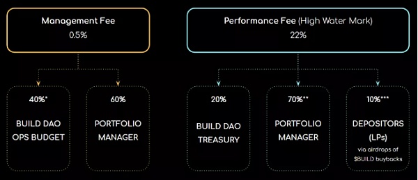 DAO和投资组合经理之间的管理费分摊不是固定的,可能会根据费用的不同而有所不同。BUILD DAO的财政削减和BUILD回购的分配机制将得到确认。