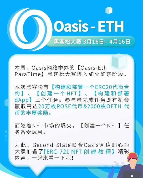 你只需要在Oasis上「构建和部署一个ERC20代币合约」,或者「创建一个NFT」,再或者「构建和部署dApp」,就可以有机会获得高达20万枚ROSE代币或者2000枚OETH代币的丰厚激励。