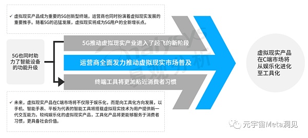 随着5G时代的到来,虚拟现实产业进入了起飞阶段,同时该产业也为5G应用贡献了增长点。另外,在5G技术的加持下,智能设备实现功能升级,虚拟现实技术将应用于以手机平板和智能手表为代表的日常智能设备,由娱乐化走向工具化,融入用户日常生活。