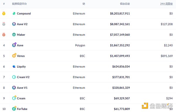 DeFi项目锁定资产前十排名及锁仓量,数据来源:Debank