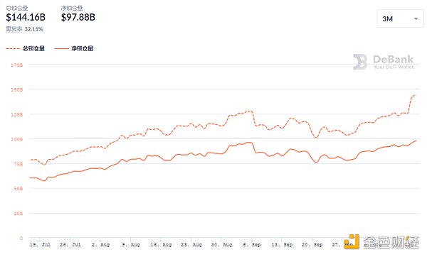 Ethereum链上DeFi锁定资产前十排名及锁仓量,数据来源:Debank