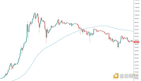 2017年牛市结束,BTC见顶20000美金开始回落,同样在跌破120日均线支撑后迎来加速下探,后面也是出现了大反弹向上回抽120日均线的过程,不过一样未能站稳,触碰后价格继续回落再创新低,所以也是个熊市里的超跌反弹,不是行情反转。