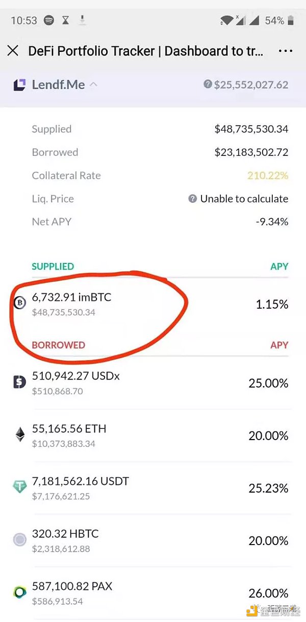 图:Lendf的借贷余额中出现6732.91枚虚假imBTC