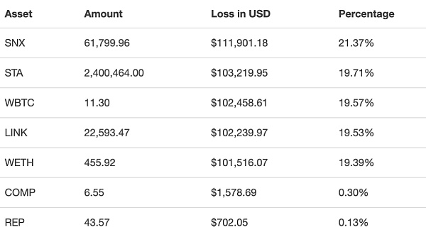 经我们统计发现,Balancer 在此次攻击事件共计损失了 523,616.52 美元的数字资产,详情列表如下:
