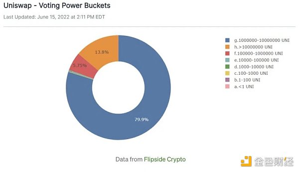 SUSHI有近450个钱包拥有90%的投票权,而Uniswap只有40个。