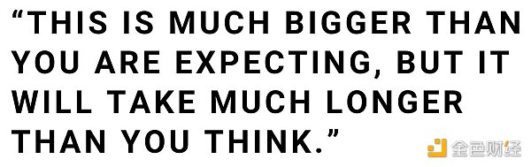 有一天,我打电话给他,和他聊了聊早期的商业计算、互联网,将它们与加密货技术进行比较。他是这么说的: