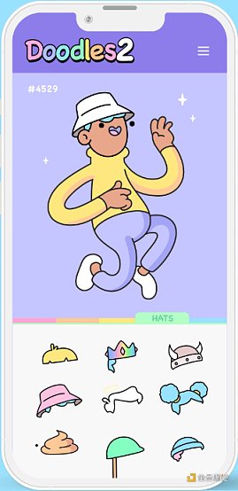 在融资消息宣布之后,Doodles 在官网公布了于 6 月宣布推出的 Doodles 2 的部分信息。Doodles 2 即支持 Doodles NFT 形象进行自定义造型,通过不同的服饰和配饰 NFT 对原有形象进行装饰,装饰后的 NFT 形象可以保存在链上且无需 Gas 费用。
