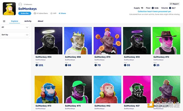 ▲?Solana NFT 市场上的 SolMonkeys?