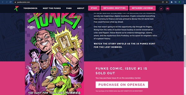 Punks Comic 是 NFT 漫画系列,由漫威和 DC 的漫画艺术家 Chris Wahl 绘制。用户可以使用以太坊来购买该漫画。根据该网站的介绍,每一个系列都会以不同的主角来开展故事。而在漫画里的主要角色中皆穿着了阿迪达斯服装。