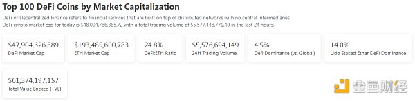1.DeFi代币总市值:479.04亿美元