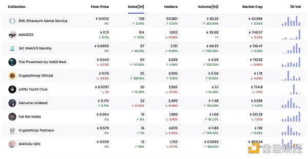 24小时内销售涨幅前十的NFT 数据来源:NFTGO