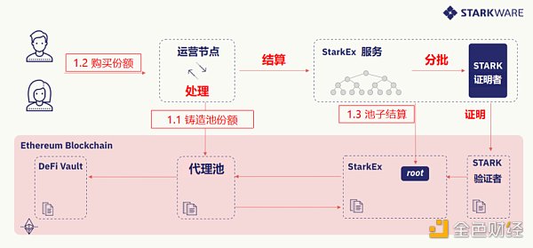 代理池:一个「新」的在链上智能合约,来协调 StarkEx 合约的需求、管理池子所有权,并与 DeFi 目标合约交互。