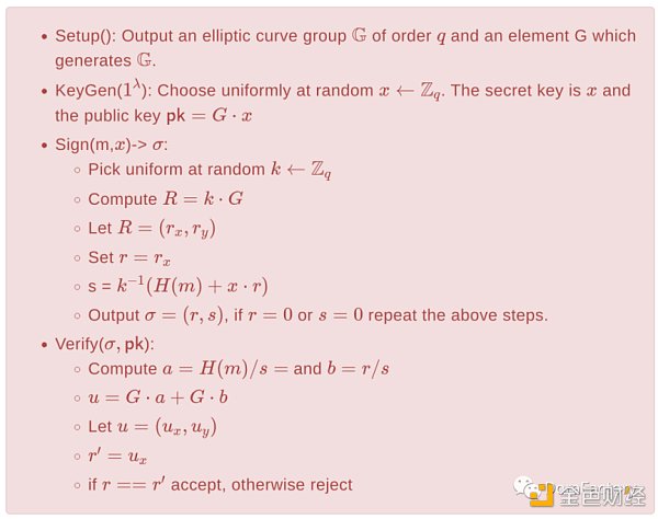 最后重要的是,ECDSA 根据定义是可塑的(可延展的):两个不同的签名可以映射同一个信息。这是可行的,因为 (r,s) 和 (r,-s modq) 可以通过对 s 的形式实施限制来缓解(始终考虑较小的 s),验证信息 m。