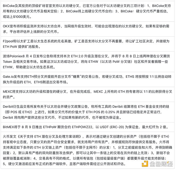 这一场分叉盛世,是每个交易所都不会错过的流量盛宴,目前可以确定如下交易所的态度,生态建设有利可图会吸引他们在二级市场上的支持,构建属于 ETHPOW 的交易深度。