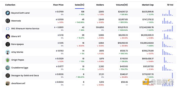 24小时内销售涨幅前十的NFT 数据来源:NFTGO