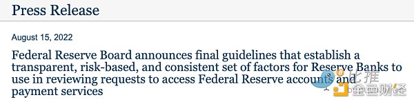 美联储副主席莱尔·布雷纳德在一份声明中表示:“新指南提供了一个一致和透明的流程来评估对美联储账户和支付服务访问的请求,以支持安全、包容和创新的支付系统。”
