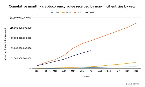 2022 年的加密货币总收入目前为 16 亿美元,相比 2021 年 7 月底低了 65%,这种下降似乎与加密货币价格的下跌有关。?
