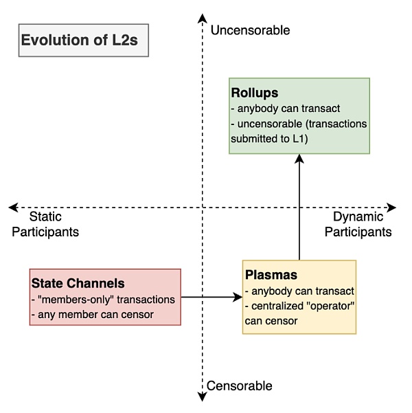 实际上,可扩展性的研究在过去六年可以归结为一件事:什么样的“拒付支票”可以被强制执行。首先,只有一组预先商定的参与可以在彼此之间进行交易 (状态通道)。接着就是,任何人都可以交易,但也有可能被审查 (plasma)。终于,我们把审查问题也解决了 (rollups)。