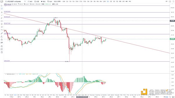 大方向周线级别,上周收盘价格已突破14000-10500的下降趋势线,后面回踩不破继续向上的概率大,周线MACD多头量柱0轴上方持续增长,价格沿周线MA5均线持续上行,蓄势后有望继续上攻17年顶点与19年顶点长期下降压制线,当前压制点位11000-11300区域,这个位置如能强势突破,接下来开启波段牛市的机会将大大增强,操作上目前回踩低吸为主,等待后续继续上攻的机会。
