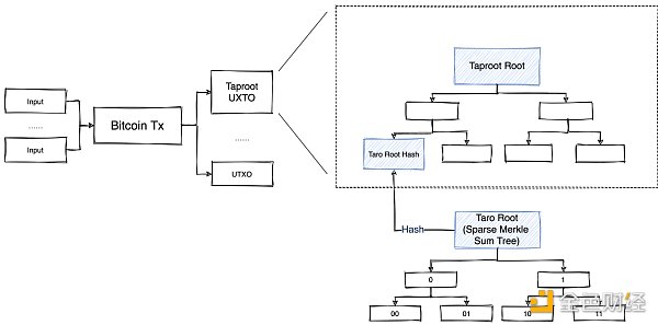 与Omnilayer和RGB一样,Taro在BTC链上发行资产的方式也是把资产交易元数据放到UTXO输出里面,不过Taro使用了新增的Taproot交易类型来实现这一切,因此应该更加地高效,隐私保护也更好。