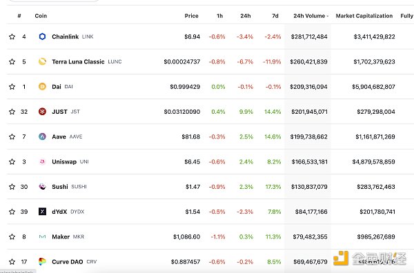 过去24小时去中心化交易所的交易量 数据来源:coingecko