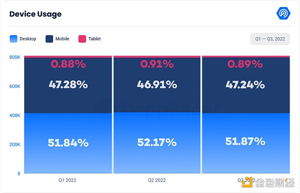 设备使用率也保持不变。略多于一半的用户更喜欢通过台式电脑访问网站,而略低于一半的用户是移动用户。其余的是平板电脑用户。