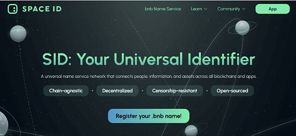 SPACE ID是BNB Chain链上全链域名服务商,用户可以绑定自己多个链的身份,让用户可以在不同的链上使用同一个域名,简化操作。社区可以通过SPACE ID的网络构建自己的顶级域名服务。目前SPACE ID域名注册数量超27万。SPACE ID官网展示了52个SPACE ID集成的应用,应用类型涉及DeFi、NFT、钱包、元宇宙、SocialFi等赛道,应用涉及多条公链。与元宇宙应用的集成让SPACE ID域名可成为用户在元宇宙中的身份名片。Dune数据显示,SPACE ID平均注册成本为0.0505 BNB,最高注册成本为5 BNB。项目官网:https://space.id/