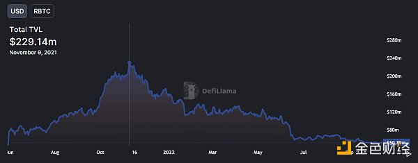 RSK的TVL与上次峰值的2.29亿美元相比有所下跌,但并未消失——源于DeFiLlama