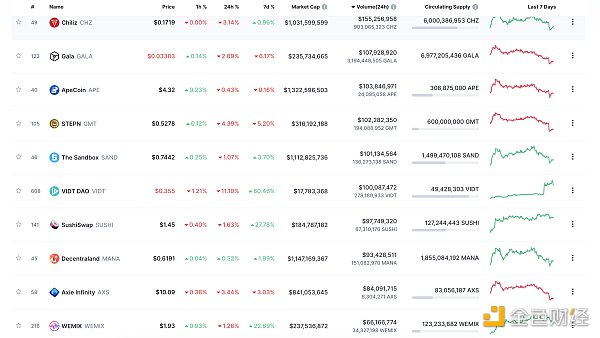 24小时NFT交易量、交易量前十项目 数据来源:Coinmarketcap